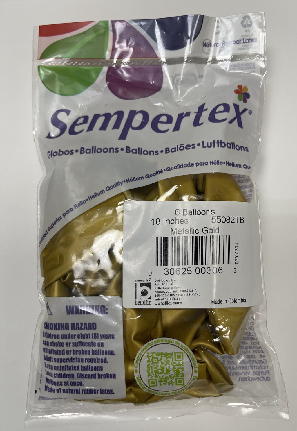 METALLIC GOLD 18" SEMPERTEX BALLOONS 6CT